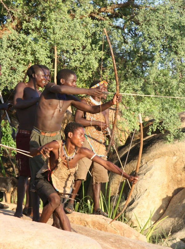 Upon arrival, begin your cultural immersion. Spend the afternoon with a Hadzabe community, witnessing their unique lifestyle and observing how they hunt using bows and arrows, gather roots and berries, and communicate through click-based language.